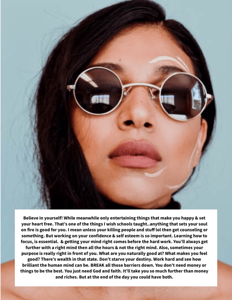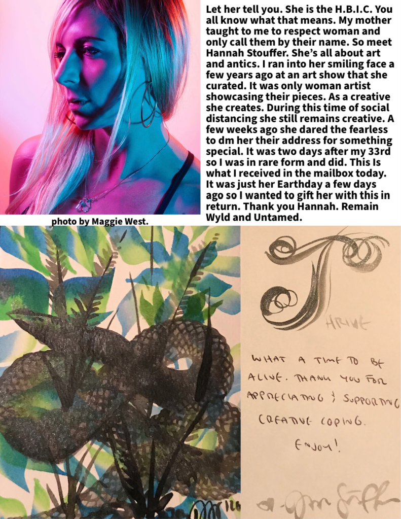 Like a true G Kimmy is calm like a bomb. She’s been doing this art shit since she was in elementary school. Sometimes there’s hidden messages and themes in her pieces. It all just depends on the vibe she’s tryna help you catch.