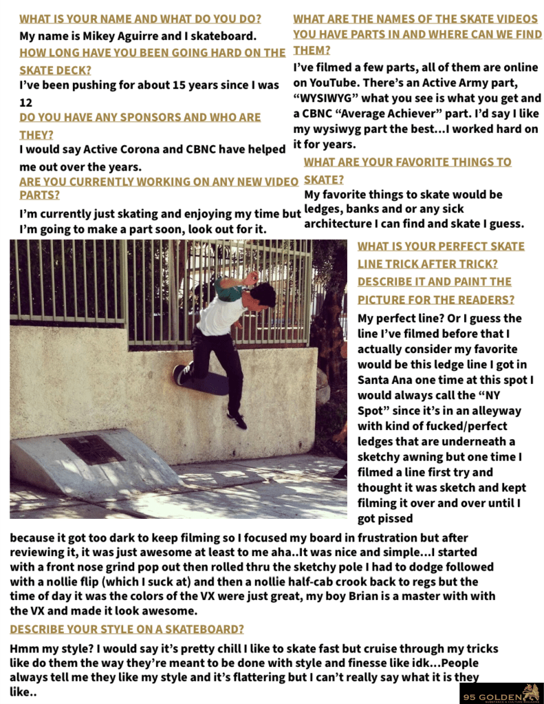 This dude makes skateboarding his art. He “paints” on wall with his wheels. He see’s his line before it’s done. Mikey is a perfectionist, if he doesn’t feel like it’s film worthy, he’s going to keep at it until he feels good enough about it. Shit he may even sleep on it and get back to it once the sun comes out again. What’s a little toe tap from time to time?!?