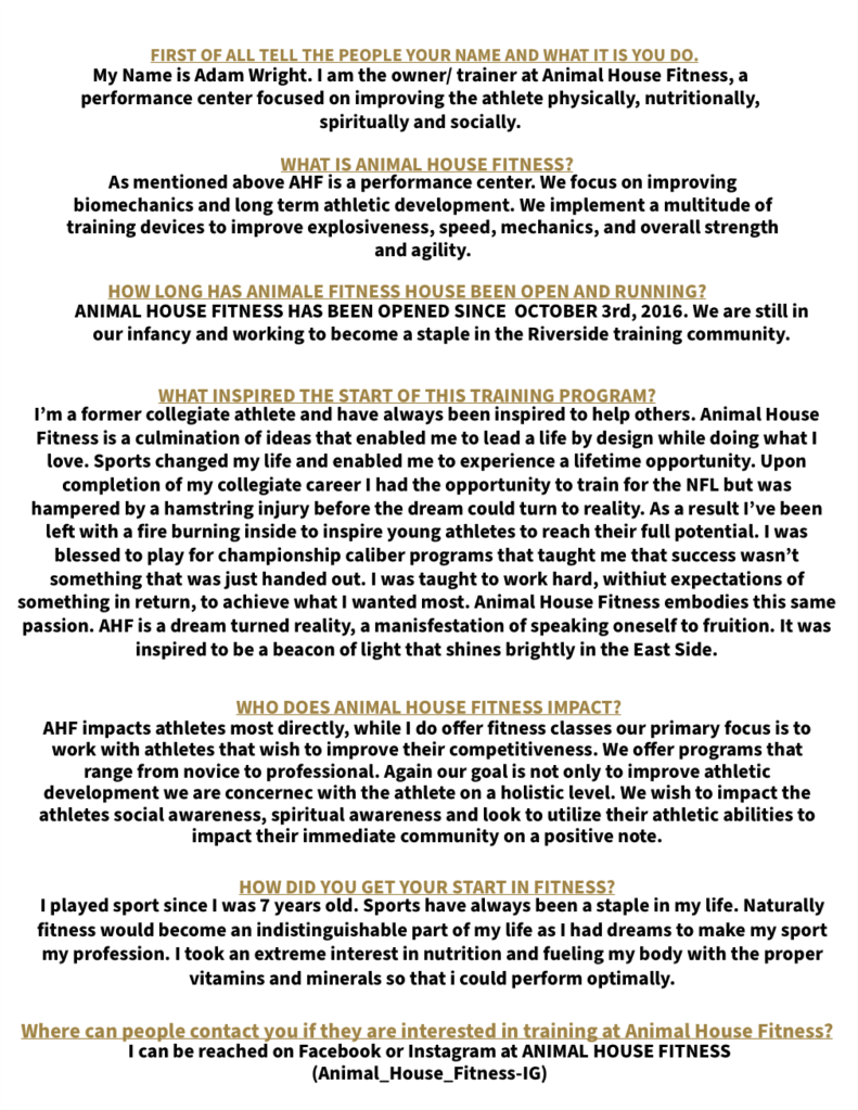 Animal House Fitness is here for all of your training and fitness goals. Adam Wright is an athlete who pushes athletes to get better everyday mentally, physically, and spiritually.